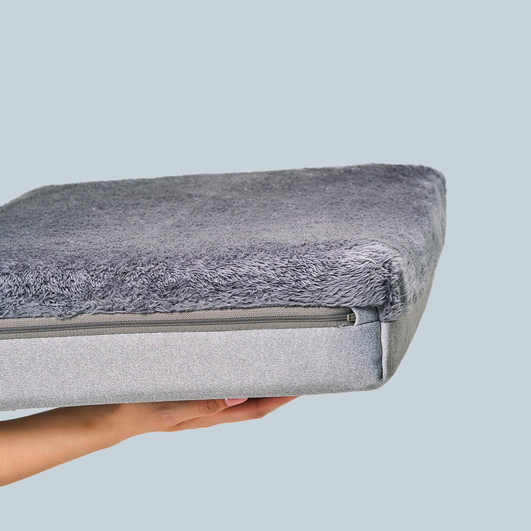 人用マットレスと同じ高性能フォームを犬用にチューニング。寝返りを打たない犬の体にかかる圧力を分散させ、足腰と関節への負担を軽減します。低反発+高反発の二層構造で、いつでも快適な寝心地を支えます。