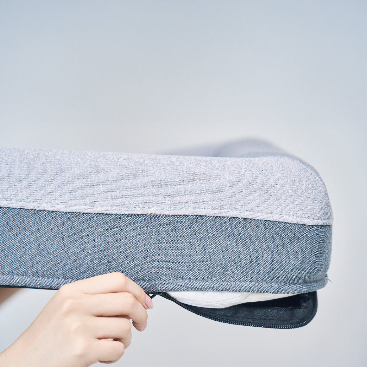 中央のクッションカバーは簡単に取り外しが可能で、手洗い、もしくは洗濯機のデリケートモードでの洗濯が可能です。
