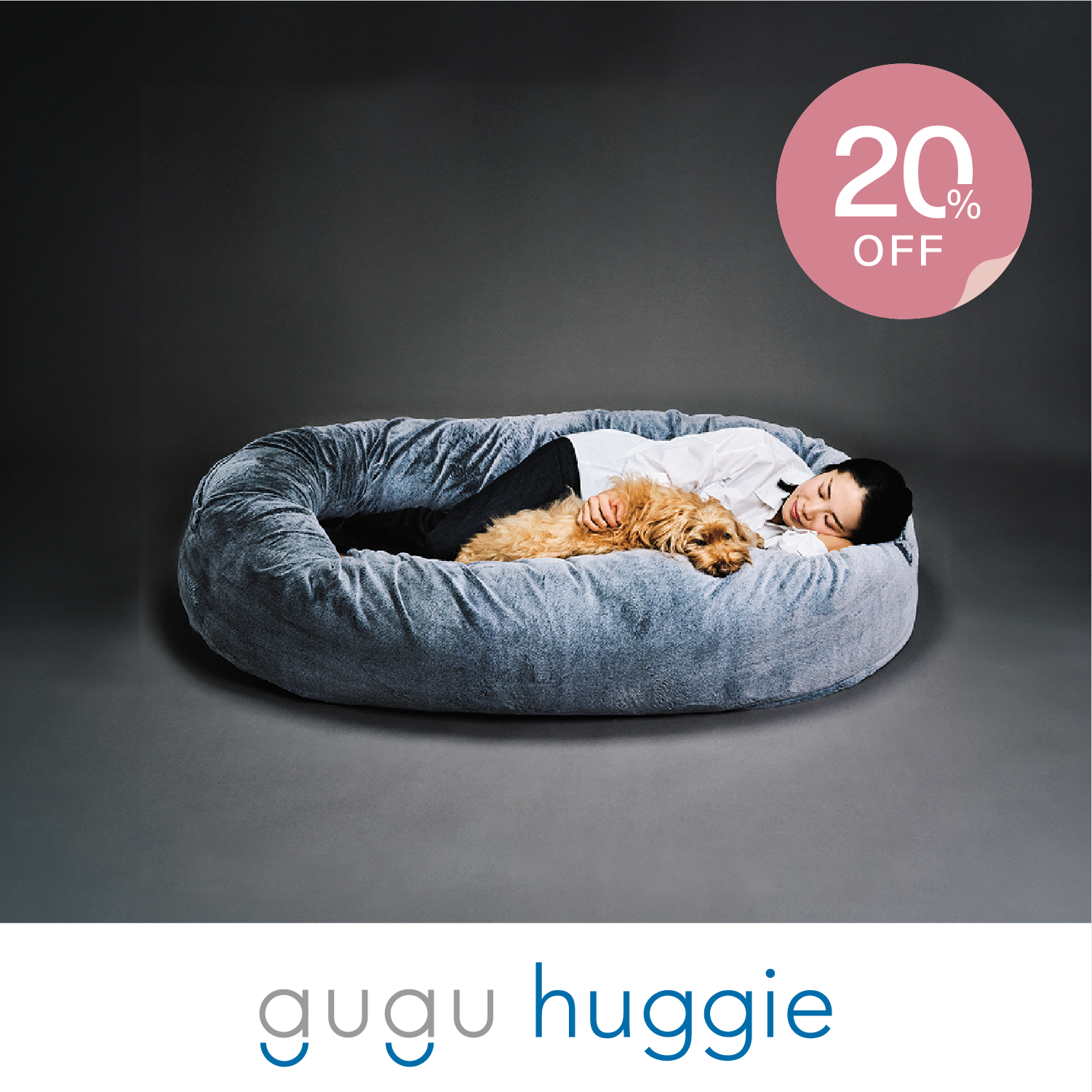 飼い主と愛犬が共にくつろいで過ごせる大型サイズの犬用ベッド。guguハギーで、大切な家族と一緒にくつろぐ、かけがえのない幸せなひとときを。