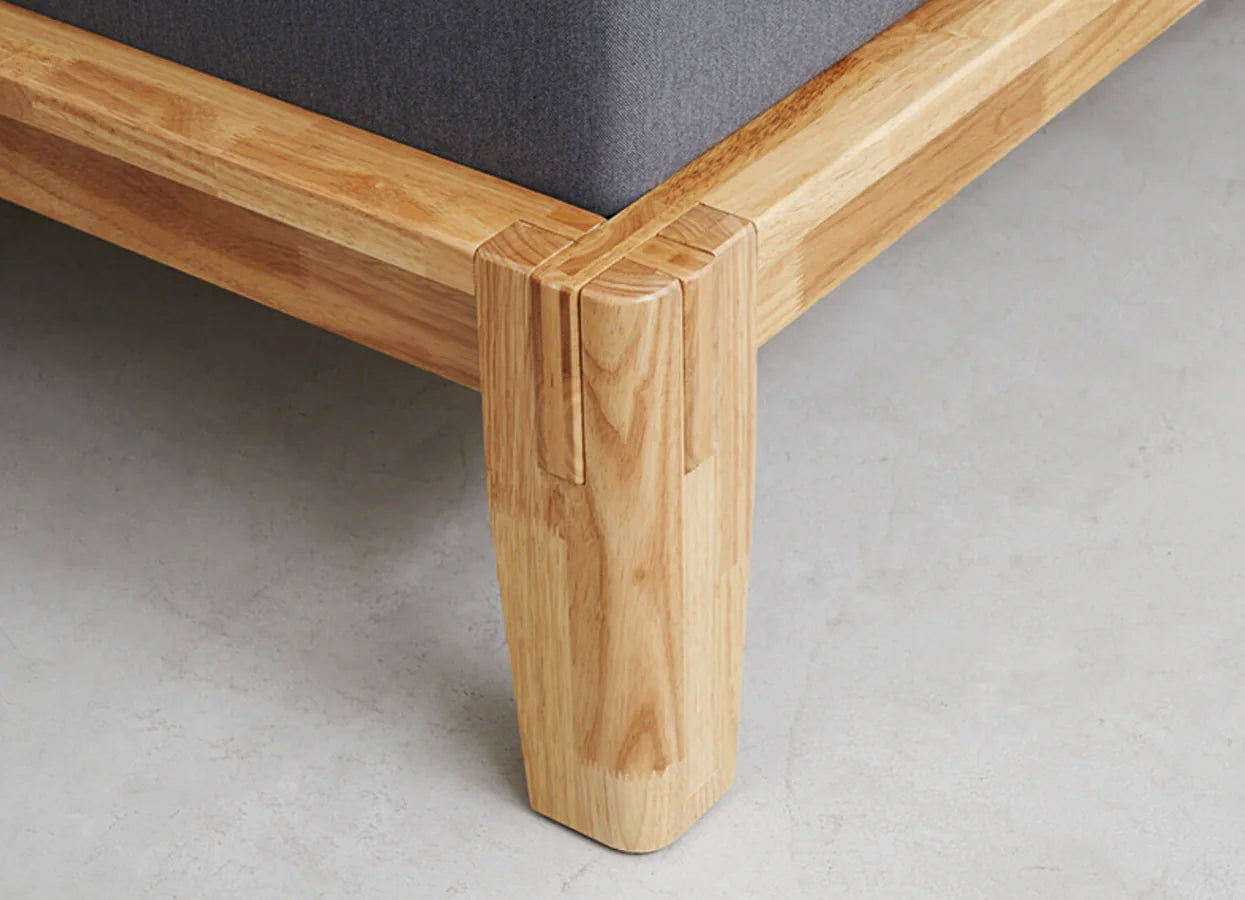 フレームの構造は、日本の伝統建築の「組木」からインスパイアされています。木材同士がお互いを支え合いながら揺れや圧力を受け流すことでとても安定した強度を保ちます。また、金属をほぼ使っていないため、劣化しにくいというメリットも。もし劣化や破損があってもパーツのみの交換が可能です。まさに「いいものを長く使う」ための職人の知恵と技術がつまった、サステナブルなベッドフレーム。ぜひ愛着を持って長く使ってあげてください。