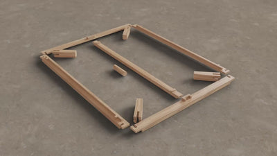 フレームの構造は、日本の伝統建築の「組木」からインスパイアされています。木材同士がお互いを支え合いながら揺れや圧力を受け流すことでとても安定した強度を保ちます。また、金属をほぼ使っていないため、劣化しにくいというメリットも。もし劣化や破損があってもパーツのみの交換が可能です。まさに「いいものを長く使う」ための職人の知恵と技術がつまった、サステナブルなベッドフレーム。ぜひ愛着を持って長く使ってあげてください。