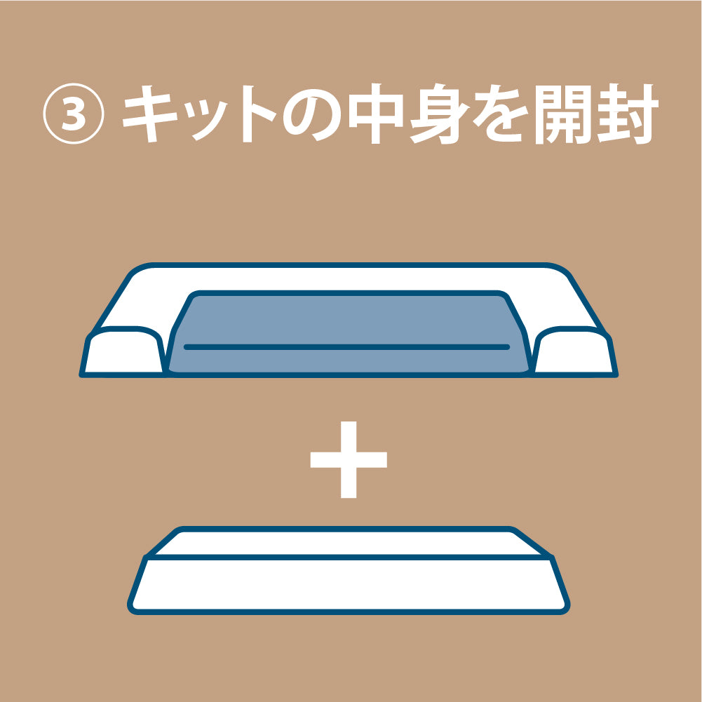 専用カバーにセンタークッションとスロープをセット。残りのクッションを3つ入れて、ファスナーを閉めればOK。
