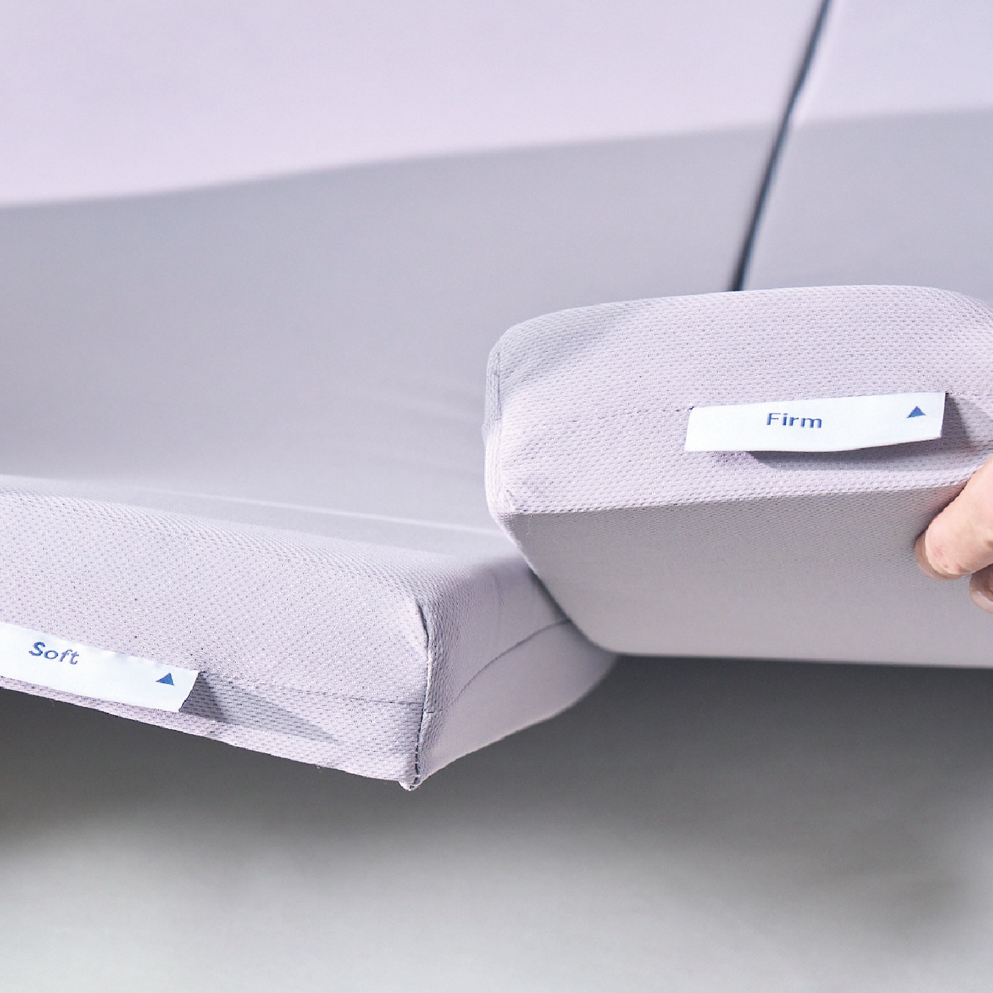 2種類の組み合わせ(①ふつう/やや硬め ②硬め/かなり硬め) から、好きなフォームを2つ選ぶことが可能。さらに上下で異なる固さのフォームをひっくり返すことで、4種類の組み合わせから寝心地を選択できます。その時の身体のコンディションや好みによってカスタマイズできるマットレスです。