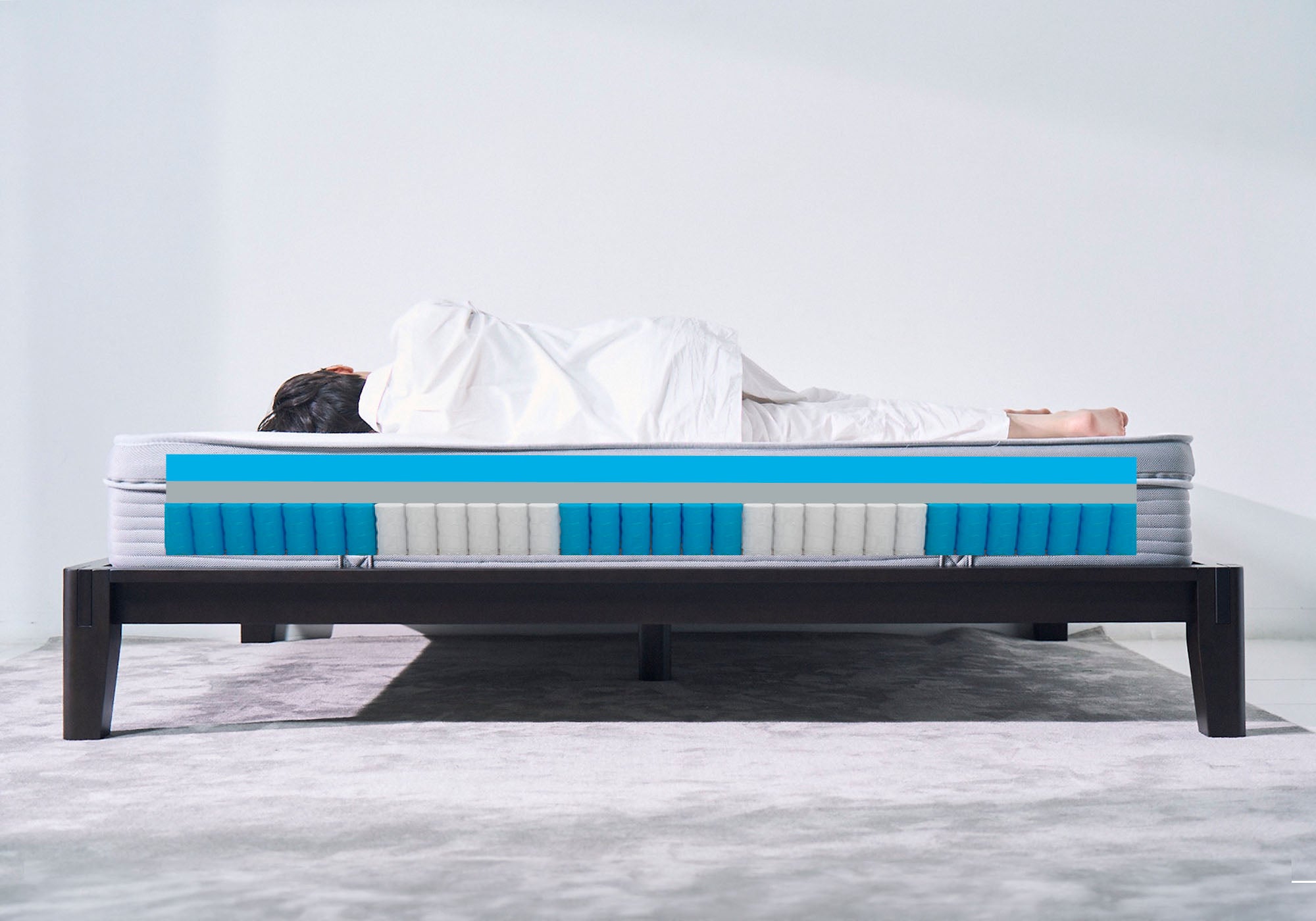 マットレスのゾーンごとに異なるレベルのサポートを実現する5ゾーンサポート・テクノロジーを搭載。必要な部分にはより高いサポート力を、そうでない部分にはよりソフトな寝心地を提供し、背骨の位置と形を適切に整えて睡眠の快適性を向上します。