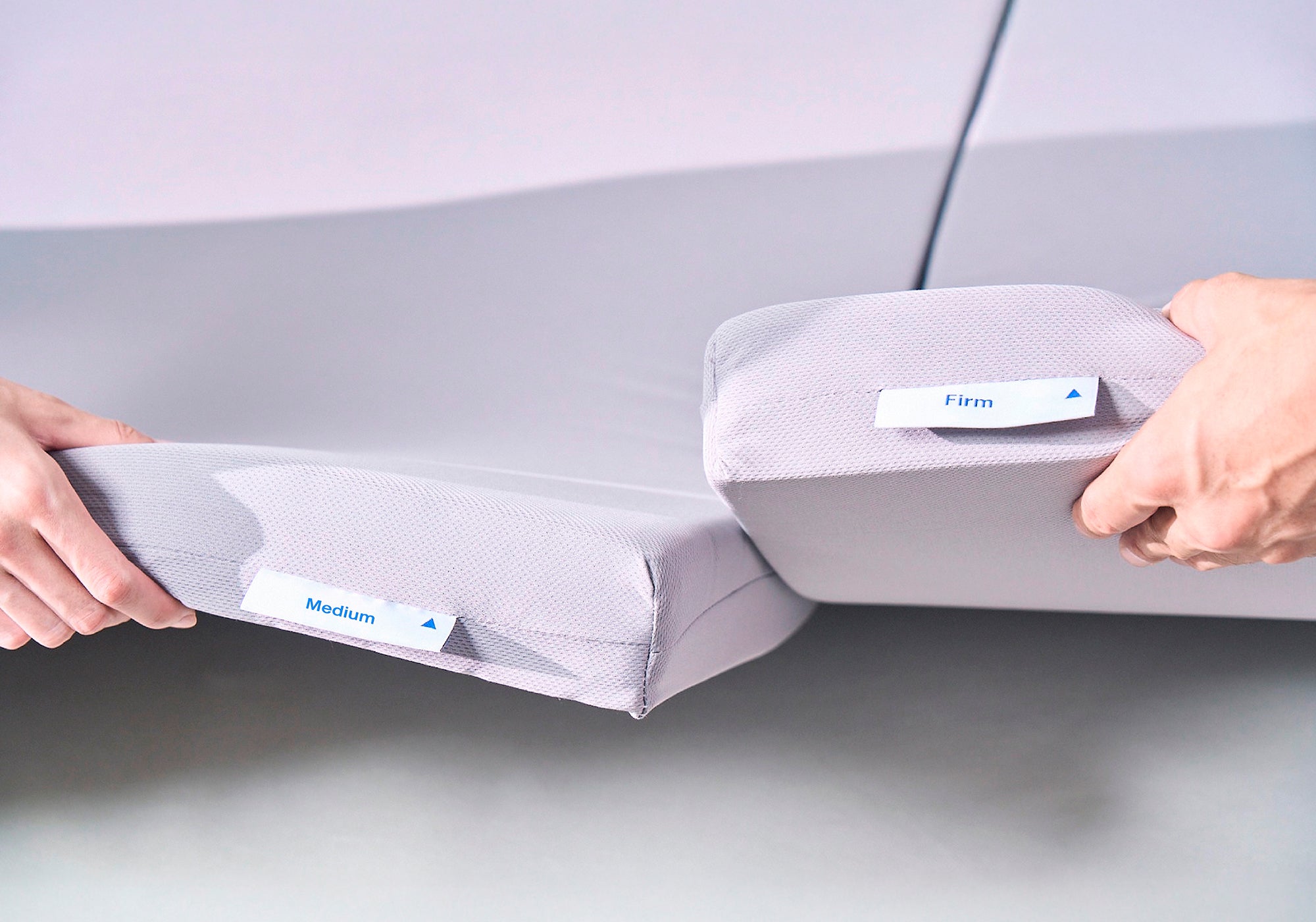 2種類の組み合わせ(①スーパーハード/ハード ②ミディアムハード/ノーマル) から、好きなフォームを2つ選ぶことが可能。さらに上下で異なる固さのフォームをひっくり返すことで、4種類の組み合わせから寝心地を選択できます。その時の身体のコンディションや好みによってカスタマイズできるマットレスです。