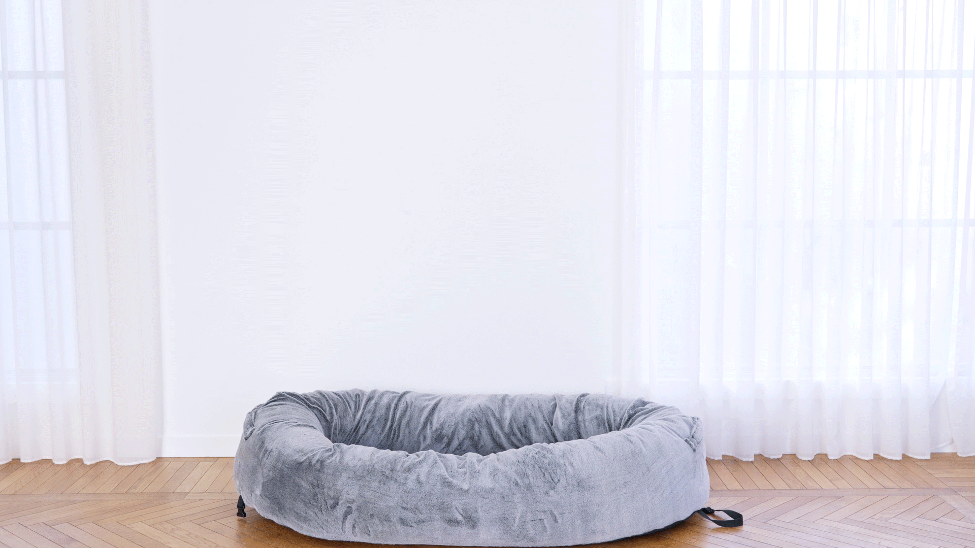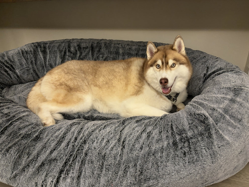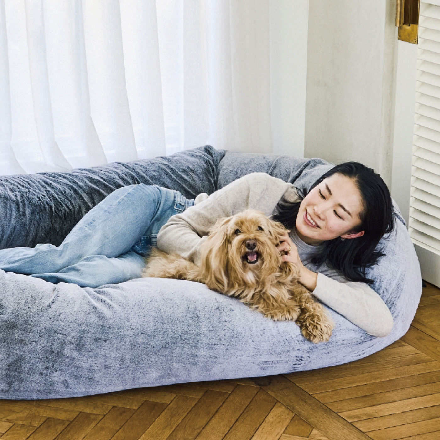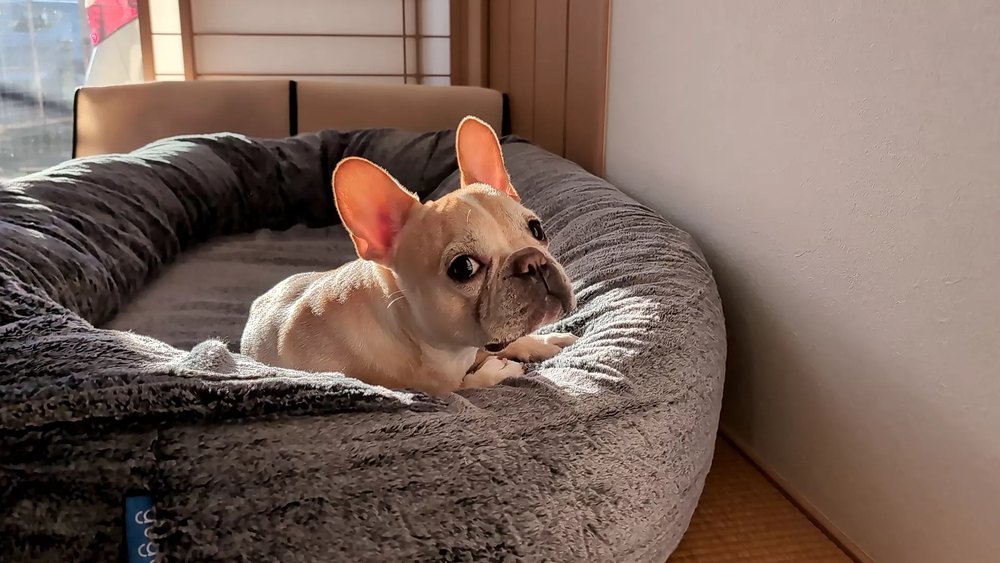 愛犬と一緒にくつろいで過ごせる大型サイズの犬用ベッド。guguハギーで、家族と共に過ごす幸せなひとときを。