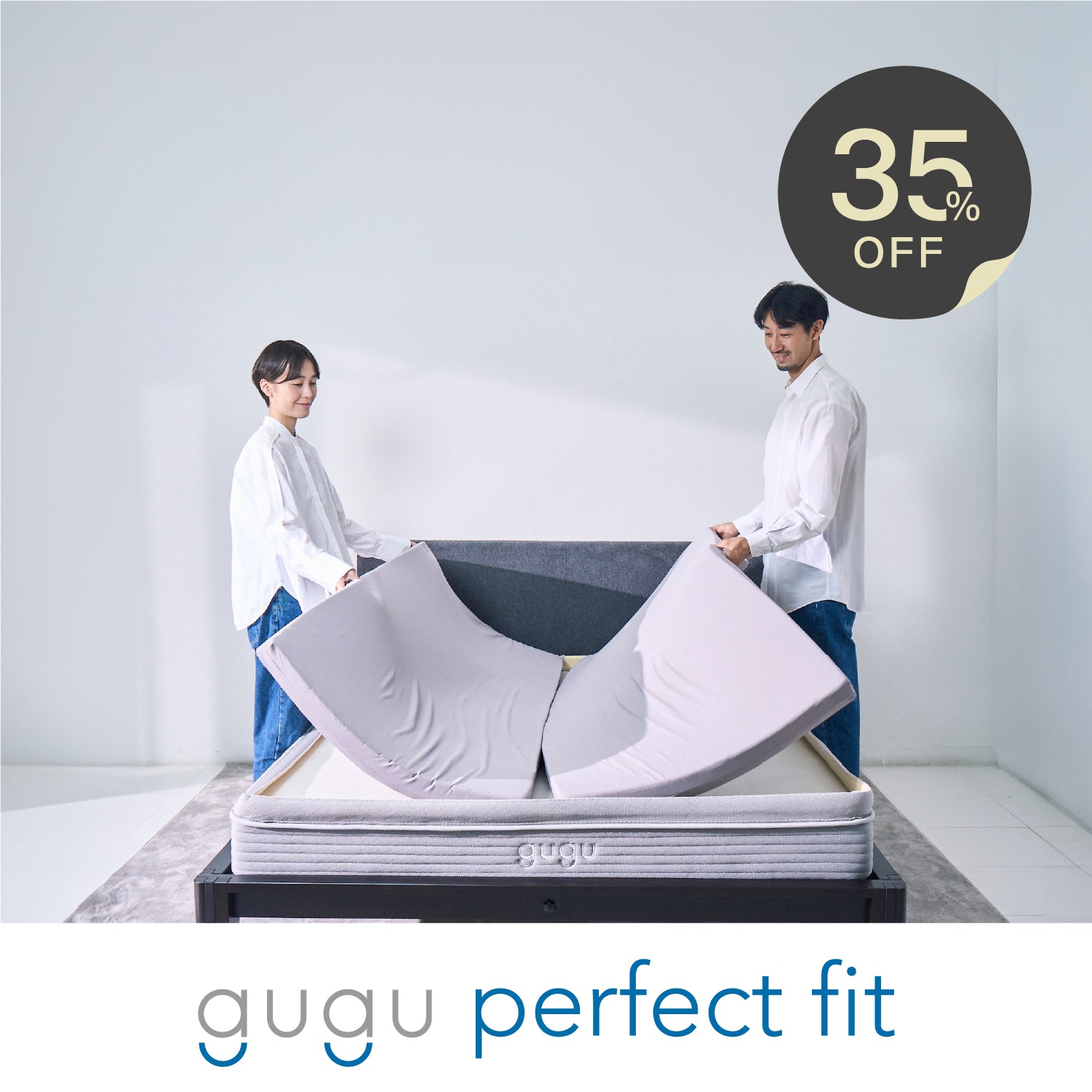 自分に合う硬さを、自分で選ぶ。 gugu パーフェクトフィットは、好みに合わせて硬さを選べるマットレス。一人ひとりの眠りに最適なサポートと快適さを提供します。調整可能なフィット感で、guguが届ける最新の答えです。
