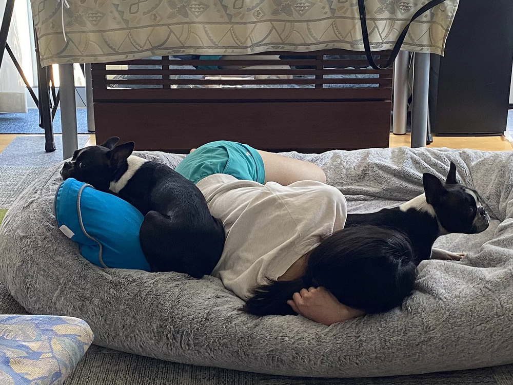 guguの人間用マットレスと犬用ベッドを組み合わせ、