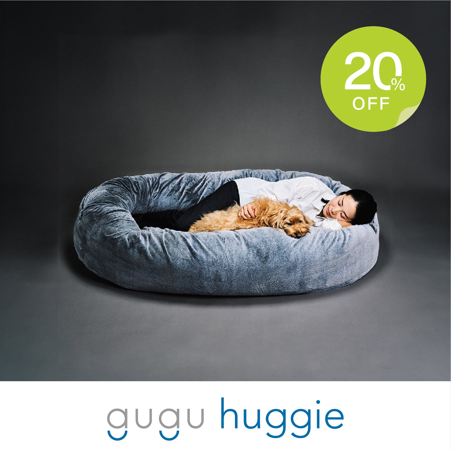 飼い主と愛犬が共にくつろいで過ごせる大型サイズの犬用ベッド。guguハギーで、大切な家族と一緒にくつろぐ、かけがえのない幸せなひとときを。